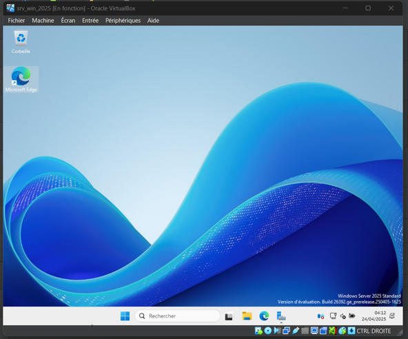 - Windows Server 2025 Preview, déployé sur une machine virtuelle, pour explorer les nouveautés à venir dans l’environnement serveur Microsoft.